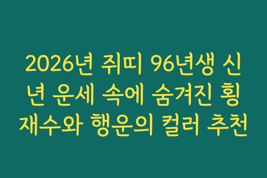 혹시 이런 고민 있으신가요. 2026년 쥐띠 96년생 신년 운세 속에 숨겨진 횡재수와 행운의 컬러 추천으로 새로운 한 해를 맞이하고 싶으신가요. 2026년 최신 정보로 여러분의 운세를 알아보는 시간을 가져보겠습니다.