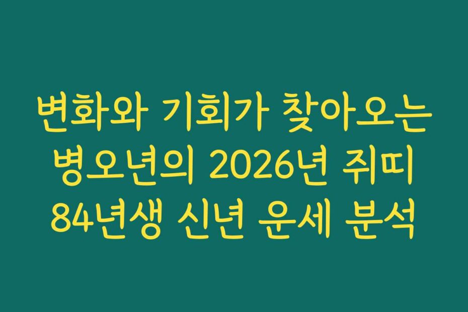 혹시 이런 고민 있으신가요. 2026년 변화와 기회가 찾아오는 병오년의 2026년 쥐띠 84년생 신년 운세 분석이 궁금하다면, 여기서 모든 해답을 찾을 수 있습니다. 2026년 최신 정보와 함께 쥐띠 84년생의 운세를 자세히 살펴보겠습니다.
