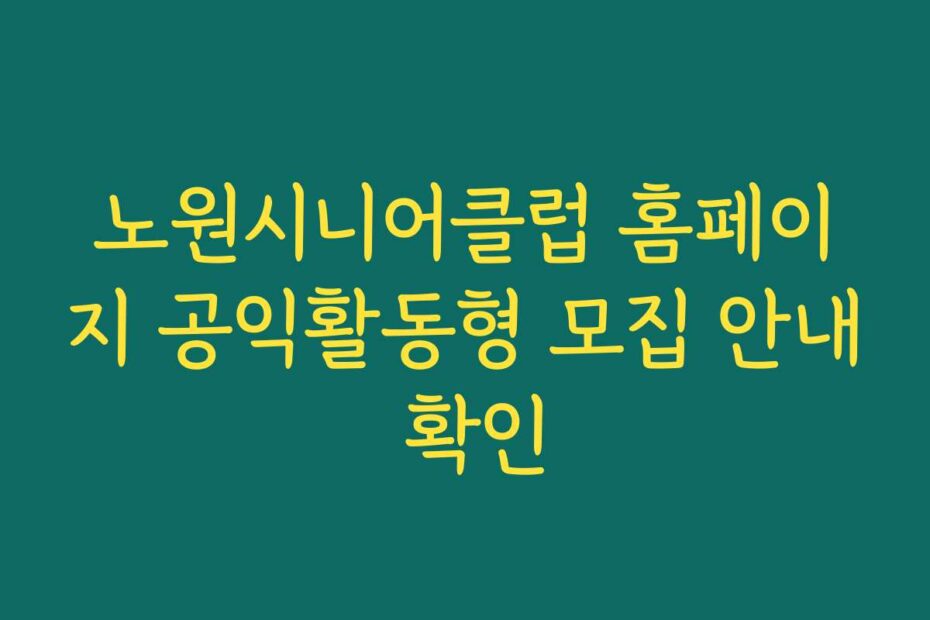 혹시 이런 고민 있으신가요. 2026년 최신 정보로 노원시니어클럽 홈페이지 공익활동형 모집 안내 확인이 필요하다면, 이 글을 통해 모든 궁금증을 해결하실 수 있습니다. 공익활동에 참여하고 싶은 분들을 위해 필요한 정보와 유용한 팁을 제공하겠습니다.