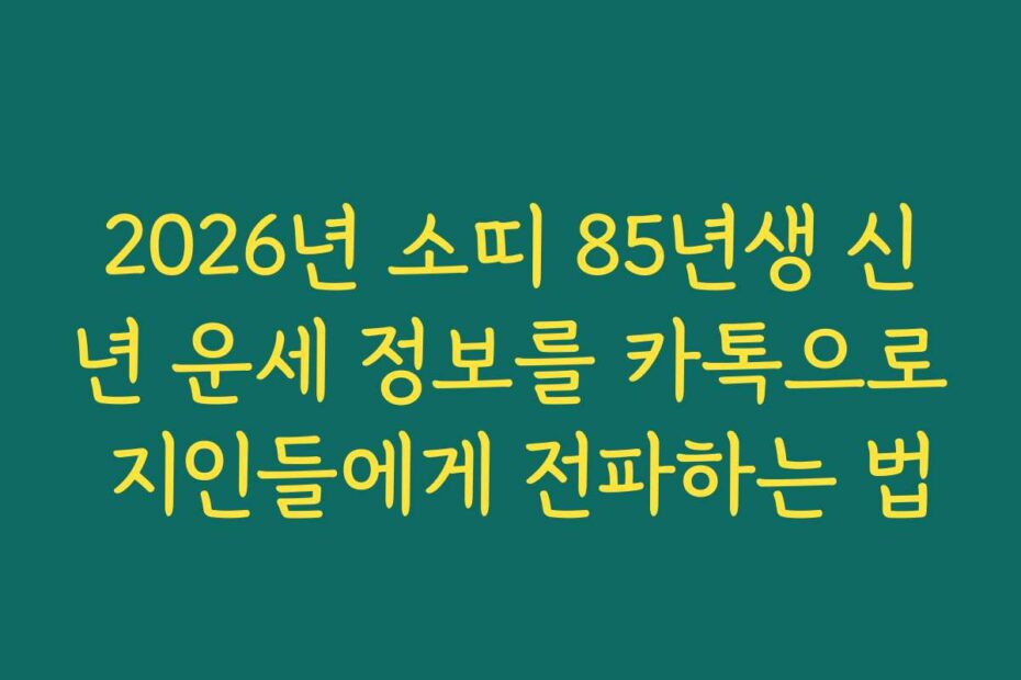 혹시 이런 고민 있으신가요. 2026년 소띠 85년생 신년 운세 정보를 카톡으로 지인들에게 전파하는 법에 대해 궁금한 분들을 위해 준비했습니다. 2026년 최신 정보를 통해 더욱 알차게 활용해 보세요.