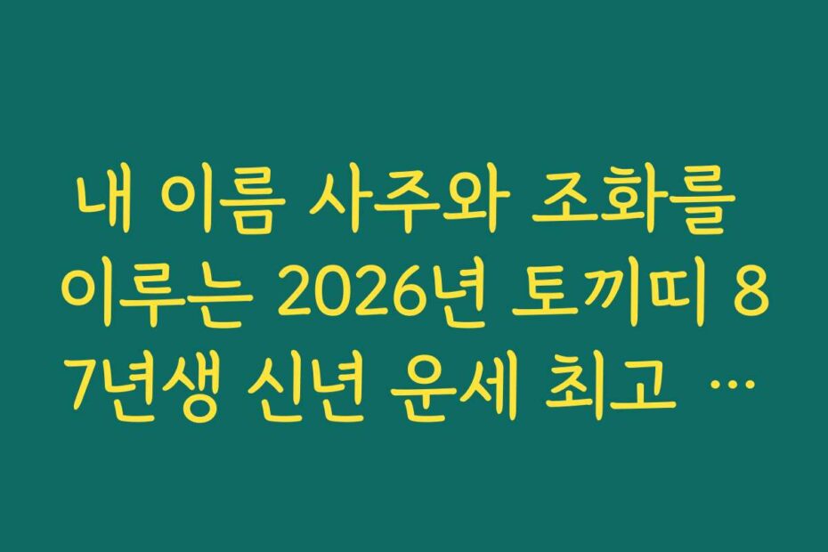 혹시 이런 고민 있으신가요. 내 이름 사주와 조화를 이루는 2026년 토끼띠 87년생 신년 운세 최고 분석을 통해 2026년의 운세를 미리 점검해보세요. 올 한 해의 운세를 알아보면 더 나은 결정을 할 수 있습니다.