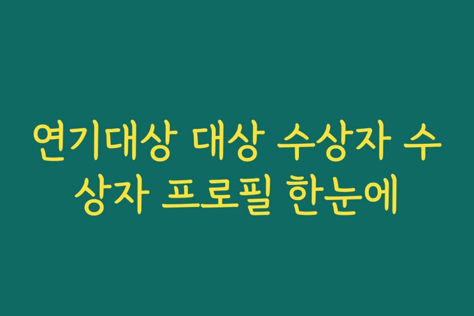혹시 이런 고민 있으신가요. 2026년 최신 정보로 연기대상 대상 수상자 수상자 프로필 한눈에 확인하고 싶으신 분들을 위해 준비했습니다. 이 글을 통해 모든 궁금증을 해결해 드리겠습니다.
