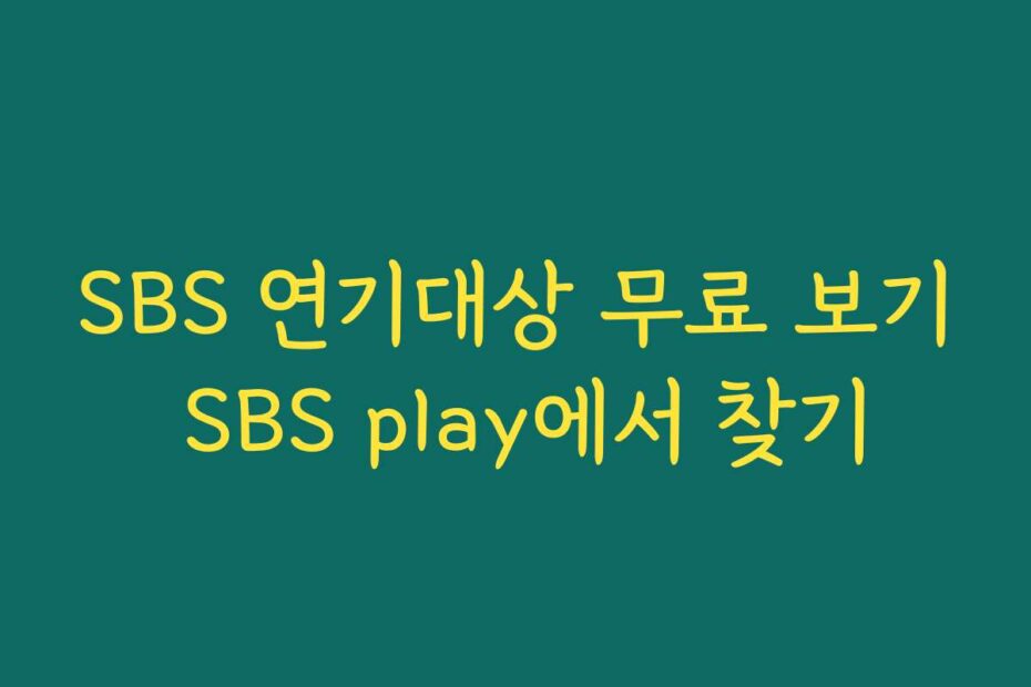 혹시 이런 고민 있으신가요. 2026년 최신 정보로 SBS 연기대상 무료 보기 SBS play에서 찾기 방법을 알려드립니다. 이 글을 통해 모든 궁금증을 해결해보세요.