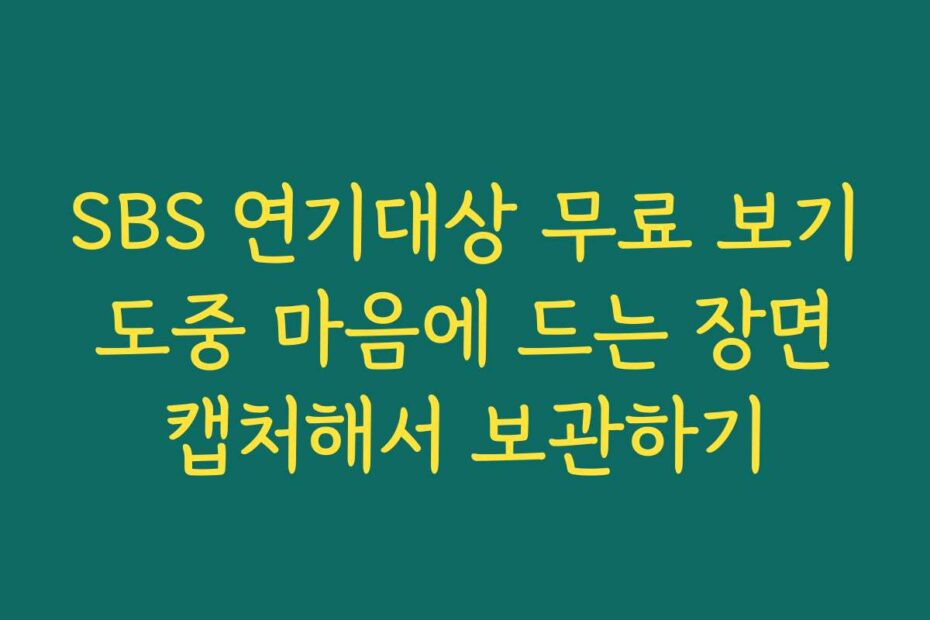 혹시 이런 고민 있으신가요. SBS 연기대상 무료 보기 도중 마음에 드는 장면 캡처해서 보관하기 방법을 찾고 있다면, 2026년 최신 정보를 통해 해결할 수 있습니다. 이 글을 통해 원하는 장면을 쉽게 캡처하고 보관하는 방법을 안내해 드리겠습니다.