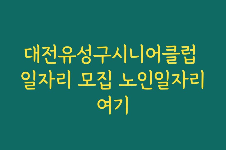 혹시 이런 고민 있으신가요. 대전유성구시니어클럽 일자리 모집 노인일자리여기와 관련한 정보가 부족해 힘들고, 제대로 된 지원을 받지 못하는 것 같아 불안하신가요. 2026년 최신 정보를 바탕으로, 구체적인 가이드와 노하우를 제공해 드리겠습니다.