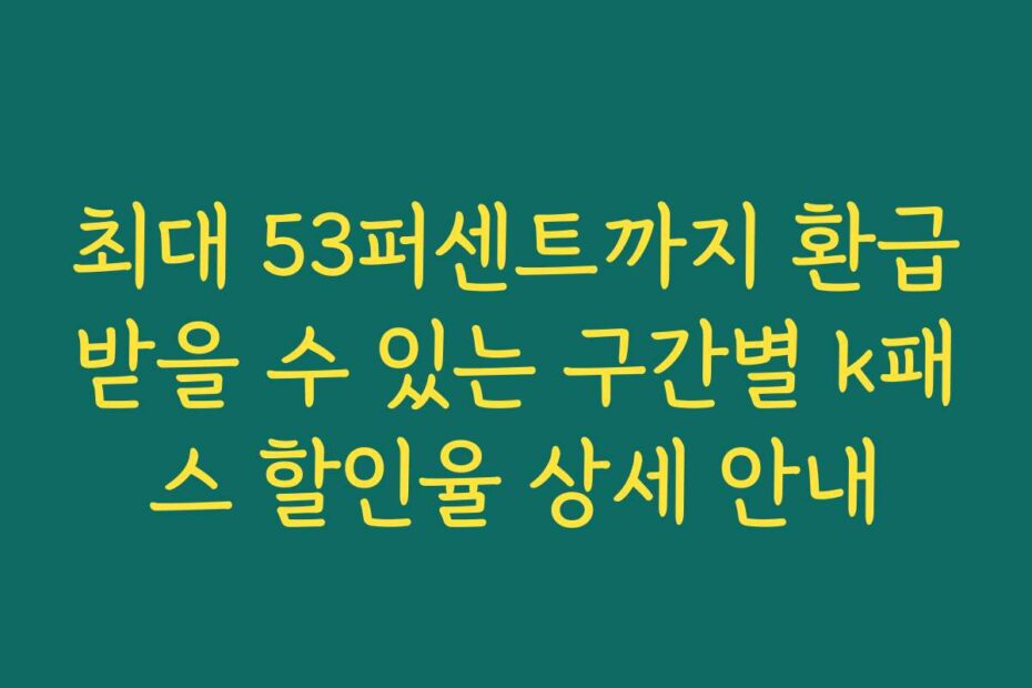 혹시 이런 고민 있으신가요. 2026년 최신 정보로 최대 53퍼센트까지 환급받을 수 있는 구간별 k패스 할인율 상세 안내를 통해 더 많은 혜택을 누리실 수 있습니다. 이 글을 통해 k패스의 할인율을 정확히 이해하고, 알찬 정보를 얻어가시길 바랍니다.