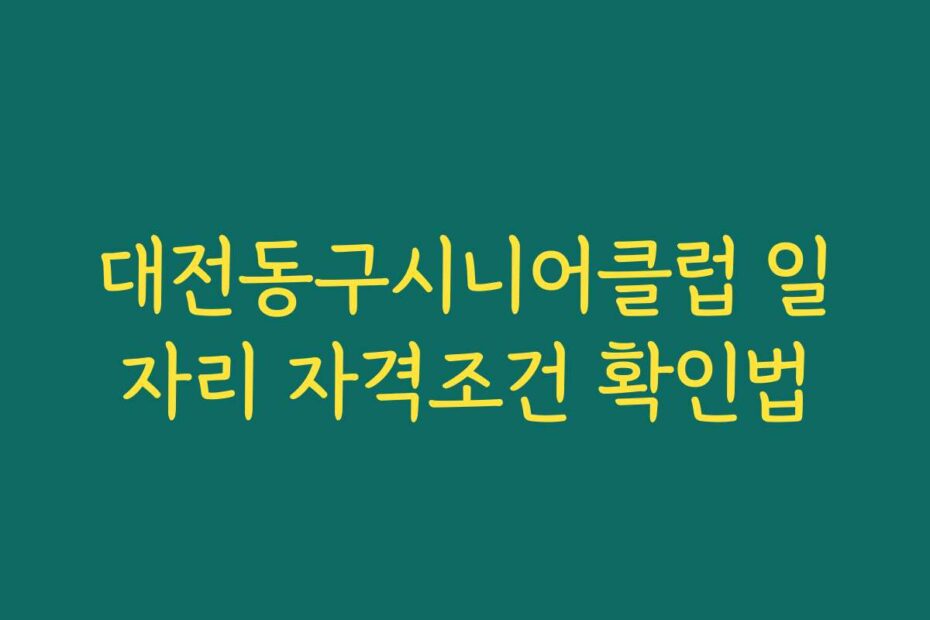 혹시 이런 고민 있으신가요. 대전동구시니어클럽 일자리 자격조건 확인법에 대해 정확한 정보를 찾고 계신다면, 이 글이 많은 도움이 될 것입니다. 2026년 최신 정보로, 필요한 모든 내용을 정리했습니다.