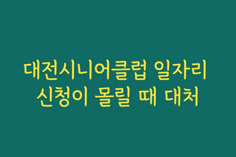 혹시 이런 고민 있으신가요. 대전시니어클럽 일자리 신청이 몰릴 때 대처하는 방법에 대한 정보는 2026년 최신 정보로, 많은 사람들이 함께 고민하는 주제입니다. 이 글을 통해 효과적으로 대처할 수 있는 방법을 알아보세요.