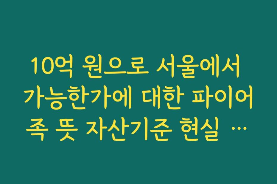 혹시 이런 고민 있으신가요. 10억 원으로 서울에서 가능한가에 대한 파이어족 뜻 자산기준 현실 분석을 통해 여러분의 궁금증을 해결하고자 합니다. 2026년 최신 정보로, 자산 형성을 고민하는 모든 분들에게 도움이 될 것입니다.