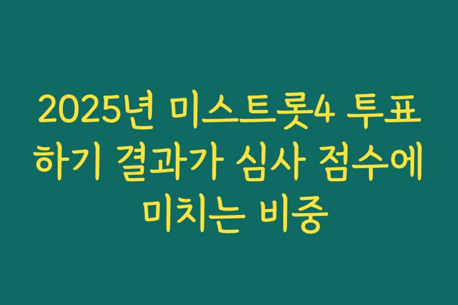 혹시 이런 고민 있으신가요. 2025년 미스트롯4 투표하기 결과가 심사 점수에 미치는 비중에 대해 궁금한 점이 많으실 텐데요. 2025년 최신 정보로 여러분의 궁금증을 해결해 드리겠습니다.