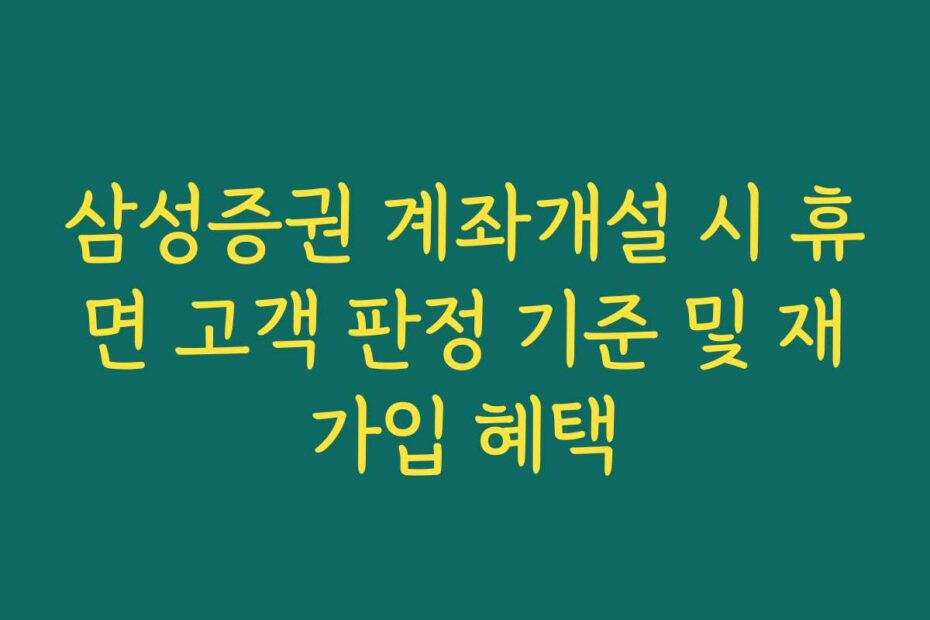 혹시 이런 고민 있으신가요. 2026년 최신 정보로 삼성증권 계좌개설 시 휴면 고객 판정 기준 및 재가입 혜택에 대해 알아보겠습니다. 불필요한 시간 낭비와 복잡한 절차를 피하고, 확실한 정보로 빠르게 해결해 보세요.