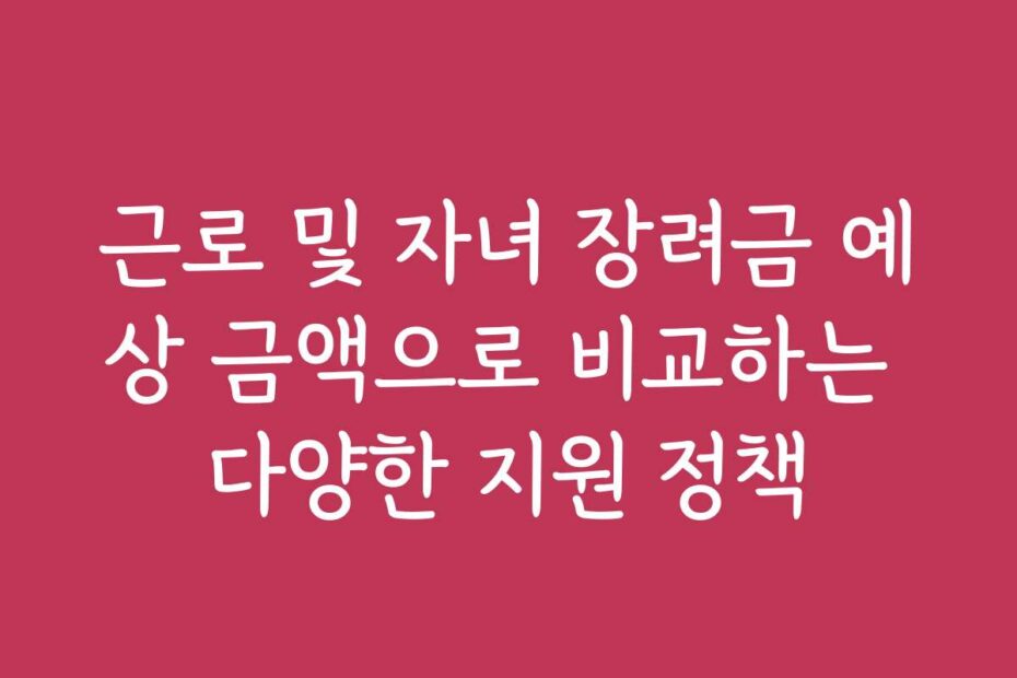근로 및 자녀 장려금 예상 금액으로 비교하는 다양한 지원 정책 신청 자격과 2026년 변경된 소득 기준, 한눈에 정리해 드립니다 2026년 근로 및 자녀 장려금 예상 금액과 함께 여러 지원 정책을 비교해보려면. 잘 알고 계신가요.