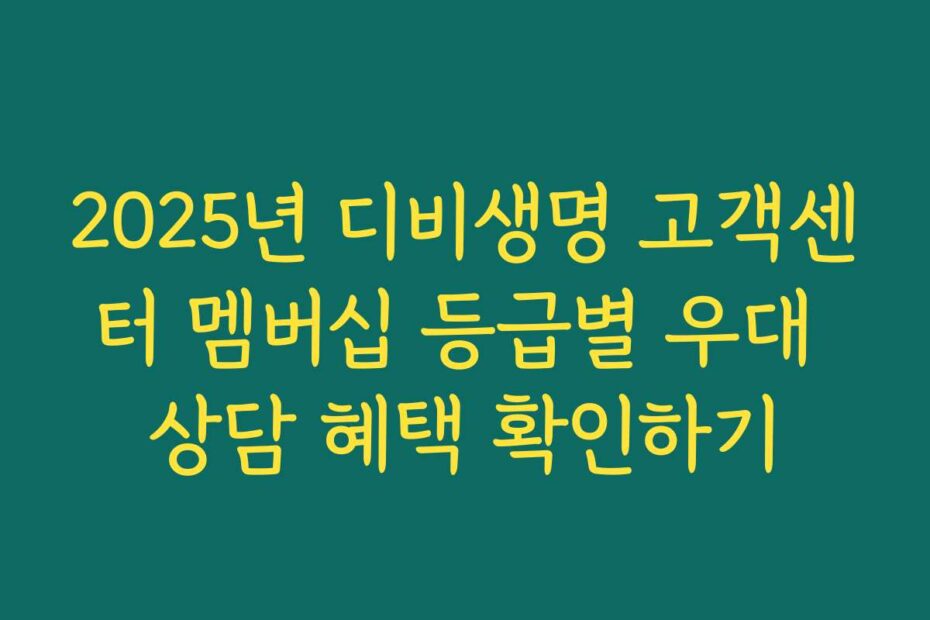 혹시 이런 고민 있으신가요. 2025년 디비생명 고객센터 멤버십 등급별 우대 상담 혜택 확인하기에 대해 궁금한 점이 많으실 겁니다. 본 글에서는 2025년 최신 정보로 다양한 혜택을 상세히 안내해 드립니다.