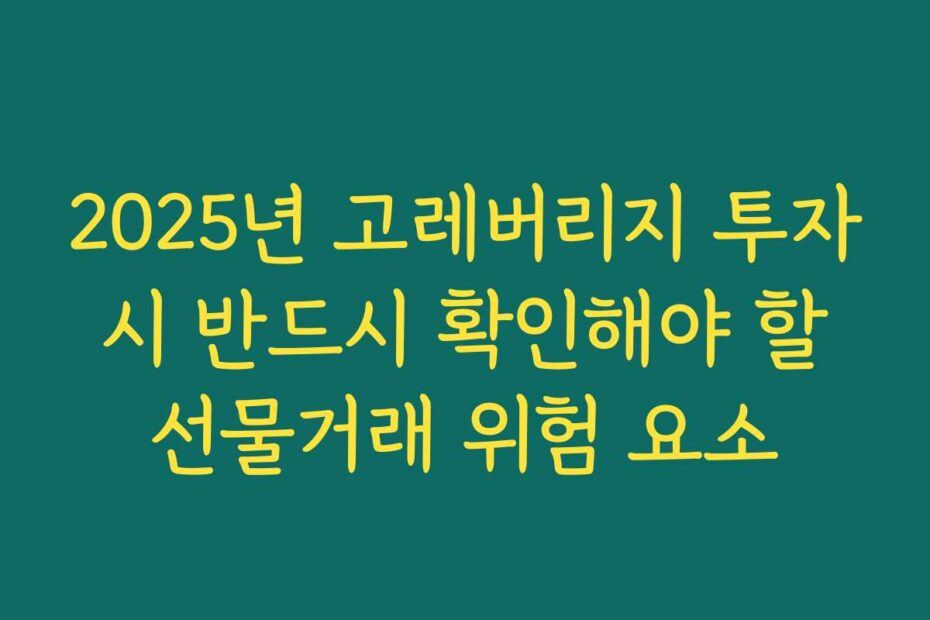 혹시 이런 고민 있으신가요. 2025년 고레버리지 투자 시 반드시 확인해야 할 선물거래 위험 요소를 모른다면 큰 손해를 볼 수 있습니다. 2025년 최신 정보와 함께 안전한 투자 방법을 알려드립니다.