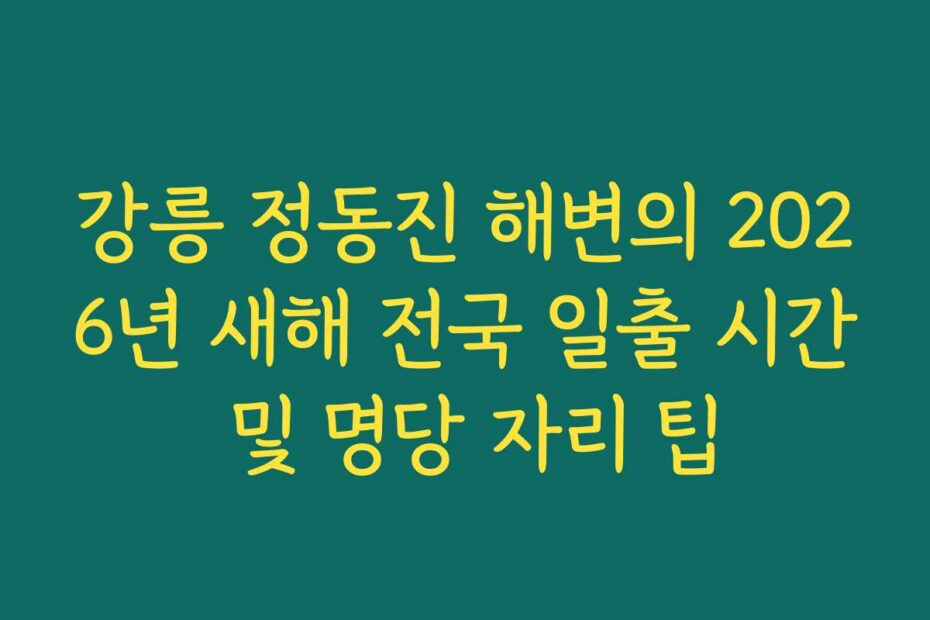 혹시 이런 고민 있으신가요. 강릉 정동진 해변의 2026년 새해 전국 일출 시간 및 명당 자리 팁에 대해 알고 싶으신가요. 2025년 최신 정보를 바탕으로 이 글에서 모든 궁금증을 해결해 드립니다.