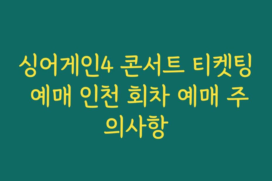 혹시 이런 고민 있으신가요. 2025년 최신 정보에 따라 준비된 싱어게인4 콘서트 티켓팅 예매 인천 회차 예매 주의사항을 통해 성공적인 예매를 이루어 보세요. 꼭 알아야 할 정보와 꿀팁을 준비했습니다.