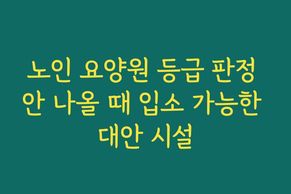혹시 이런 고민 있으신가요. 노인 요양원 등급 판정 안 나올 때 입소 가능한 대안 시설에 대해 알고 싶은 분들을 위해 2025년 최신 정보를 준비했습니다. 이 글을 통해 더 나은 선택을 할 수 있도록 도와드리겠습니다.