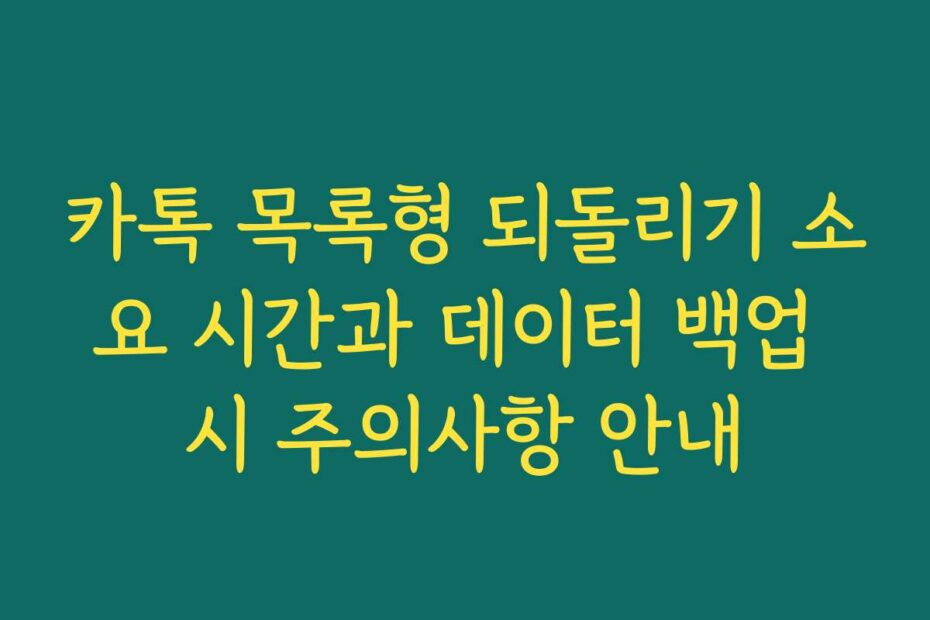 혹시 이런 고민 있으신가요. 카톡 목록형 되돌리기 소요 시간과 데이터 백업 시 주의사항 안내를 통해 문제를 쉽게 해결할 수 있습니다. 2025년 최신 정보로 여러분의 궁금증을 해소해 드리겠습니다.