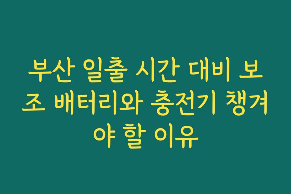 👉✅ 상세 정보 바로 확인 👈 혹시 이런 고민 있으신가요. 부산 일출 시간 대비 보조 배터리와 충전기 챙겨야 할 이유에 대해 알아보겠습니다. 많은 분들이 2025년 최신 정보로 준비하는 방법을 궁금해하고 있습니다.