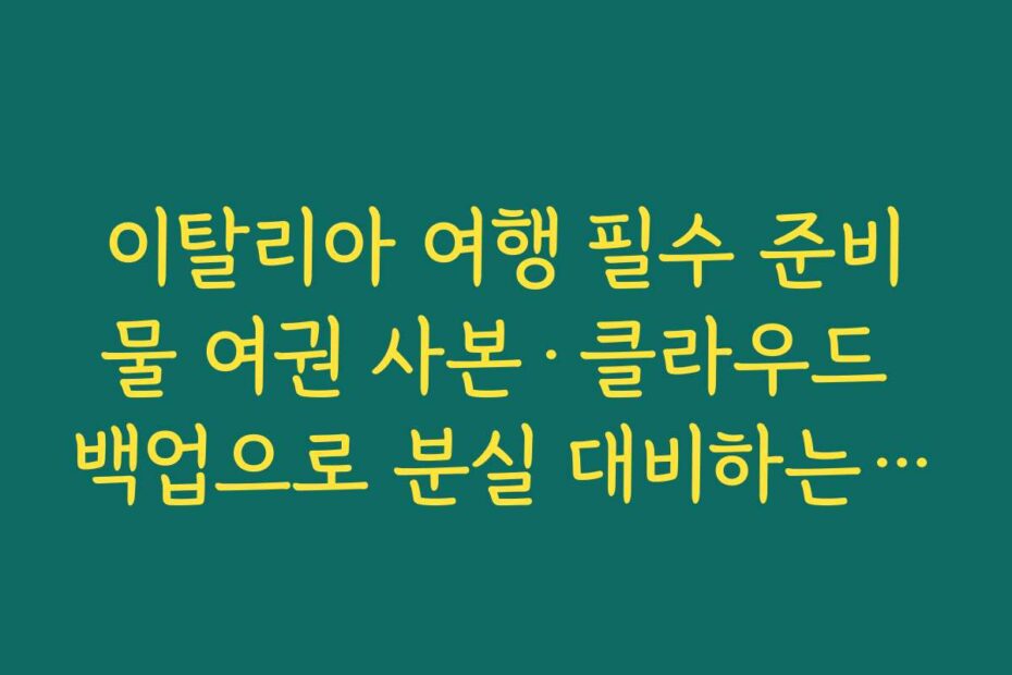 혹시 이런 고민 있으신가요. 이탈리아 여행 중 여권 분실에 대한 두려움은 많은 여행자들이 공감하는 문제입니다. 이탈리아 여행 필수 준비물 여권 사본·클라우드 백업으로 분실 대비하는 서류 관리법을 통해 안전하게 여행을 준비해 보세요.
