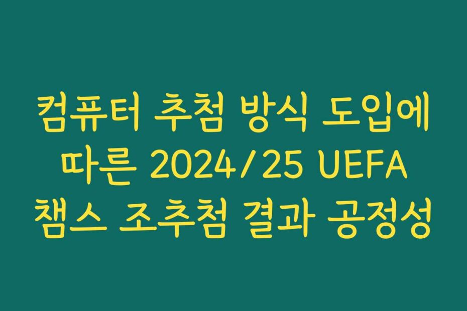 혹시 이런 고민 있으신가요. 컴퓨터 추첨 방식 도입에 따른 2024/25 UEFA 챔스 조추첨 결과 공정성에 대해 궁금한 점이 많으실 텐데요. 2025년 최신 정보와 함께 이 글을 통해 모든 궁금증을 해결해보세요.