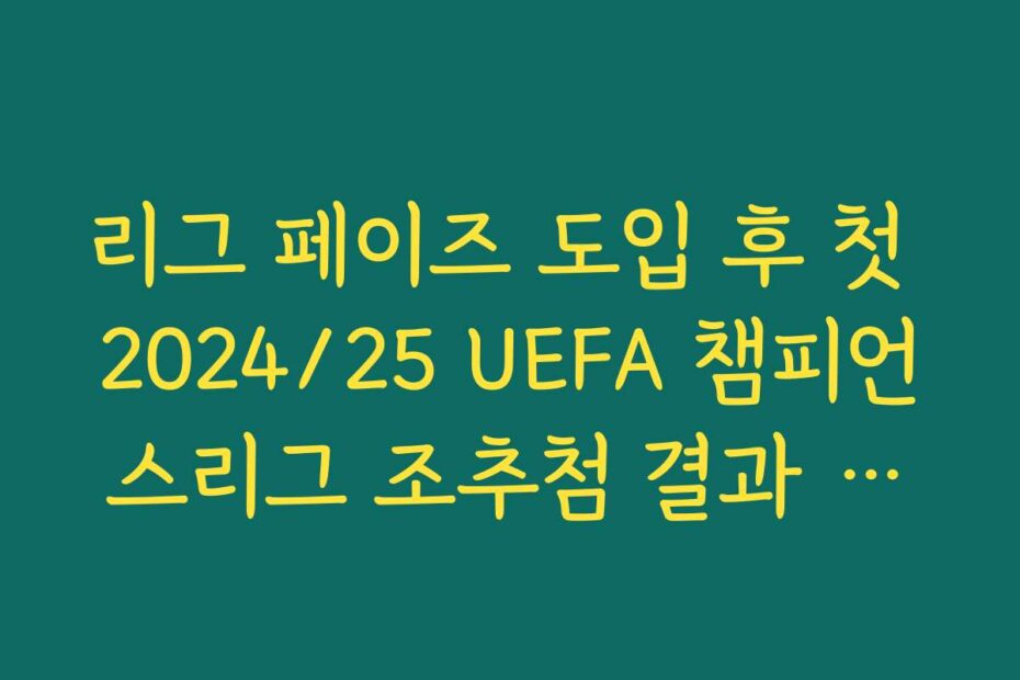 혹시 이런 고민 있으신가요. 리그 페이즈 도입 후 첫 2024/25 UEFA 챔피언스리그 조추첨 결과 반응에 대해 많은 팬들이 혼란을 겪고 있습니다. 2025년 최신 정보로, 조추첨의 결과와 그에 대한 반응을 한눈에 알아보세요.