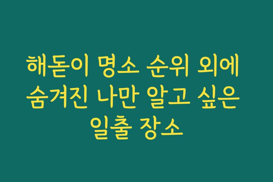 혹시 이런 고민 있으신가요. 해돋이 명소 순위 외에 숨겨진 나만 알고 싶은 일출 장소를 찾고 계신다면, 2025년 최신 정보로 여러분의 고민을 해결해 드리겠습니다.