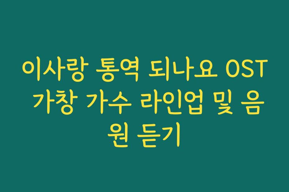 혹시 이런 고민 있으신가요. 이사랑 통역 되나요 OST 가창 가수 라인업 및 음원 듣기가 궁금하시다면, 2026년 최신 정보를 통해 궁극적인 해답을 드리겠습니다. 많은 분들이 찾는 이 정보로 여러분의 질문이 해결되길 바랍니다.