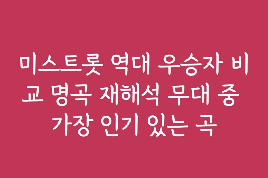 결론부터 말씀드리면, 2026년 미스트롯 역대 우승자 비교 명곡 재해석 무대 중 가장 인기 있는 곡의 핵심은 감정의 깊이 , 가창력의 기술 , 무대 매너 입니다. 이 글에서는 그 배경과 각 곡의 매력을 상세히 분석해보려고 해요.