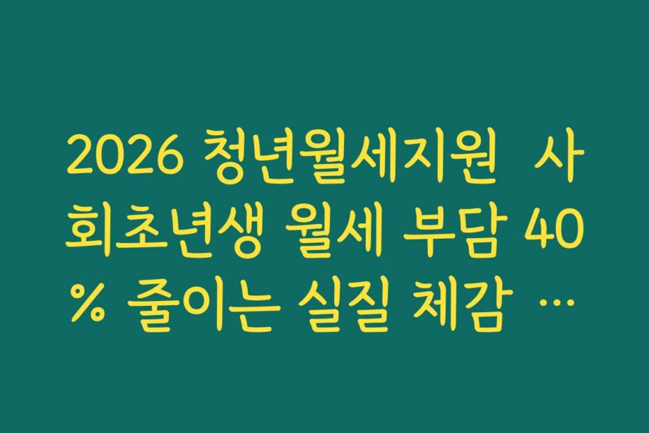 혹시 이런 고민 있으신가요. 2026 청년월세지원으로 사회초년생 월세 부담 40% 줄이는 실질 체감 효과 계산해 보기, 2025년 최신 정보입니다. 많은 청년들이 월세로 힘들어하는 지금, 이 정보를 통해 경제적 부담을 덜어보세요.