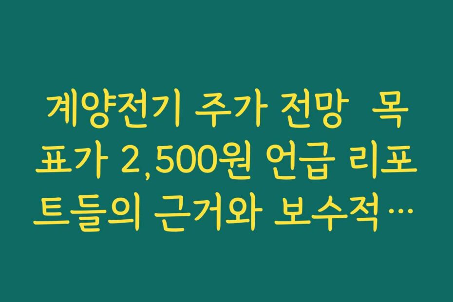 혹시 이런 고민 있으신가요. 2025년 최신 정보에 따르면, 계양전기 주가 전망 목표가 2,500원 언급 리포트들의 근거와 보수적 시나리오 비교가 필요합니다. 여러 리포트와 전문가의 의견을 통해 구체적으로 알아보겠습니다.