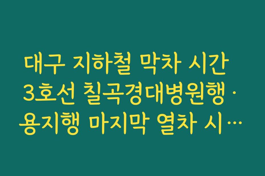 👉✅ 상세 정보 바로 확인 👈 혹시 이런 고민 있으신가요. 대구 지하철 막차 시간 3호선 칠곡경대병원행·용지행 마지막 열차 시간과 배차 간격 정리로 인해 이동 계획이 복잡해지셨다면, 이 글이 도움이 될 것입니다.