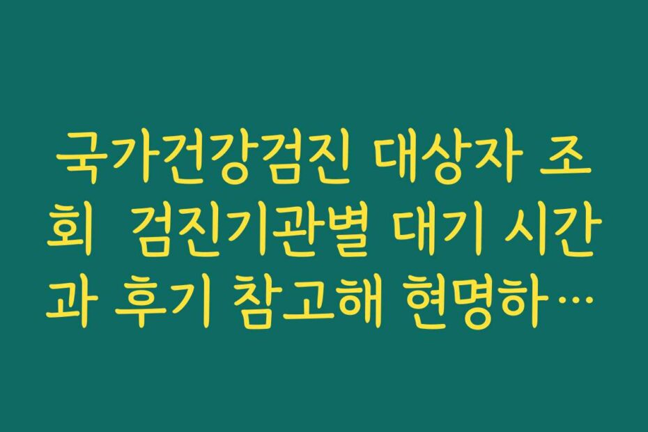 혹시 이런 고민 있으신가요. 국가건강검진 대상자 조회 검진기관별 대기 시간과 후기 참고해 현명하게 선택하는 법에 대해 알아보겠습니다. 2025년 최신 정보로, 검진을 준비하는 데 필요한 모든 사항을 정리했습니다.
