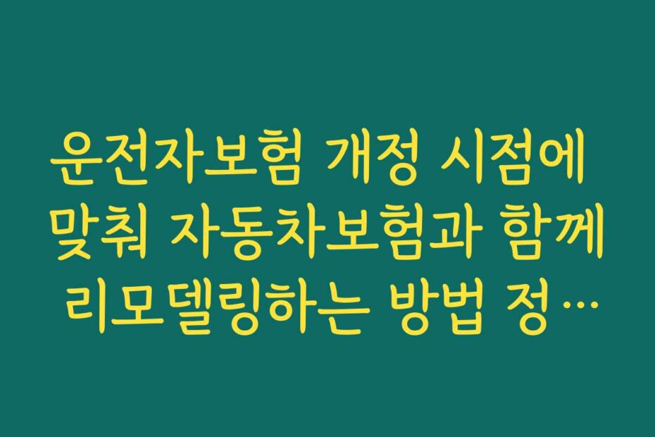 혹시 이런 고민 있으신가요. 2025년 최신 정보에 따르면, 운전자보험 개정 시점에 맞춰 자동차보험과 함께 리모델링하는 방법 정리하기에 대한 필요성이 커지고 있습니다. 많은 사람들이 이 과정에서 어려움을 겪고 있죠.