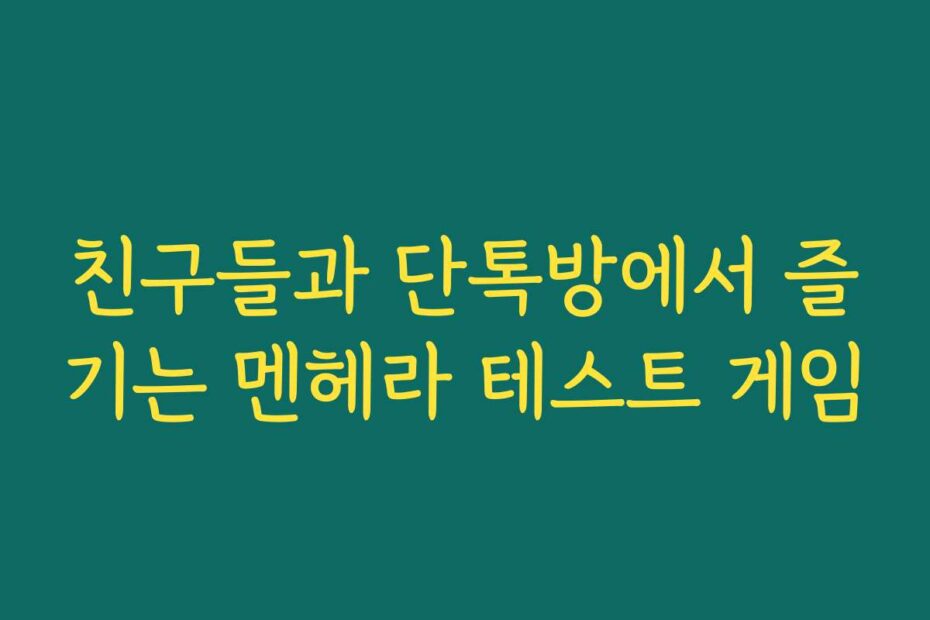 혹시 이런 고민 있으신가요. 친구들과 단톡방에서 즐기는 멘헤라 테스트 게임은 서로의 감정을 알아가는 재미있는 기회입니다. 2025년 최신 정보로, 이 게임을 통해 더욱 끈끈한 우정을 다져보세요.