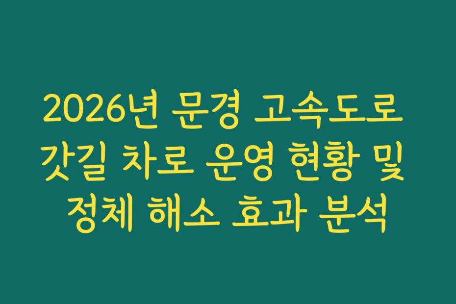 2026년 문경 고속도로 갓길 차로 운영 현황 및 정체 해소 효과 분석에 대한 깊이 있는 내용을 다루고 있습니다. 고속도로의 정체 문제로 고민하고 계신다면, 이 글 하나로 해결의 실마리를 찾을 수 있을 거예요.