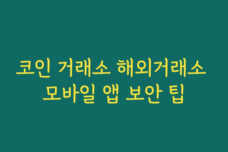 👉✅ 상세 정보 바로 확인 👈 혹시 이런 고민 있으신가요. 안전한 코인 거래소 해외거래소 모바일 앱을 사용하고 싶지만 보안에 대한 걱정이 크신가요.