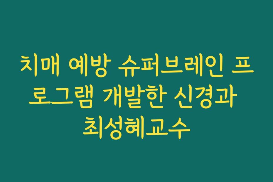 혹시 이런 고민 있으신가요. 2026년 최신 정보에 따르면, 치매는 예방이 가능하다고 합니다. 치매 예방 슈퍼브레인 프로그램 개발한 신경과 최성혜교수의 도움으로 여러분의 삶을 변화시킬 수 있습니다.