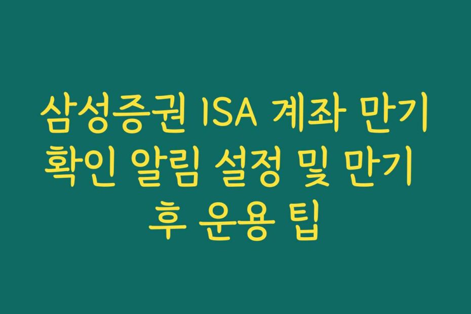 혹시 이런 고민 있으신가요. 삼성증권 ISA 계좌 만기확인 알림 설정 및 만기 후 운용 팁에 대해 알아보면 도움이 될 것입니다. 2026년 최신 정보로 여러분의 고민을 해결해 드리겠습니다.