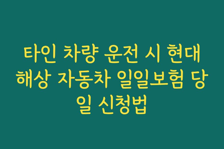 혹시 이런 고민 있으신가요. 타인 차량 운전 시 현대해상 자동차 일일보험 당일 신청법에 대해 정확한 정보를 찾기 어려워 막막하신가요. 2025년 최신 정보로, 이 글을 통해 모든 궁금증을 해소해 드리겠습니다.