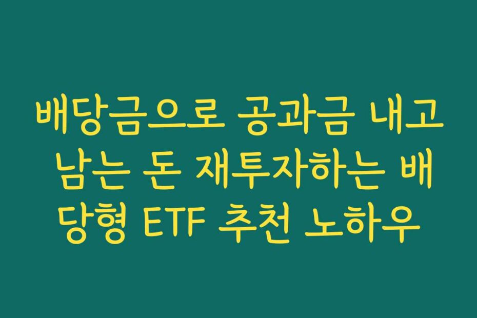 혹시 이런 고민 있으신가요. 매달 나오는 공과금을 배당금으로 납부하고, 남는 돈으로 다시 투자하고 싶으신가요. 배당금으로 공과금 내고 남는 돈 재투자하는 배당형 ETF 추천 노하우를 통해 2026년 최신 정보를 확인해 보세요.