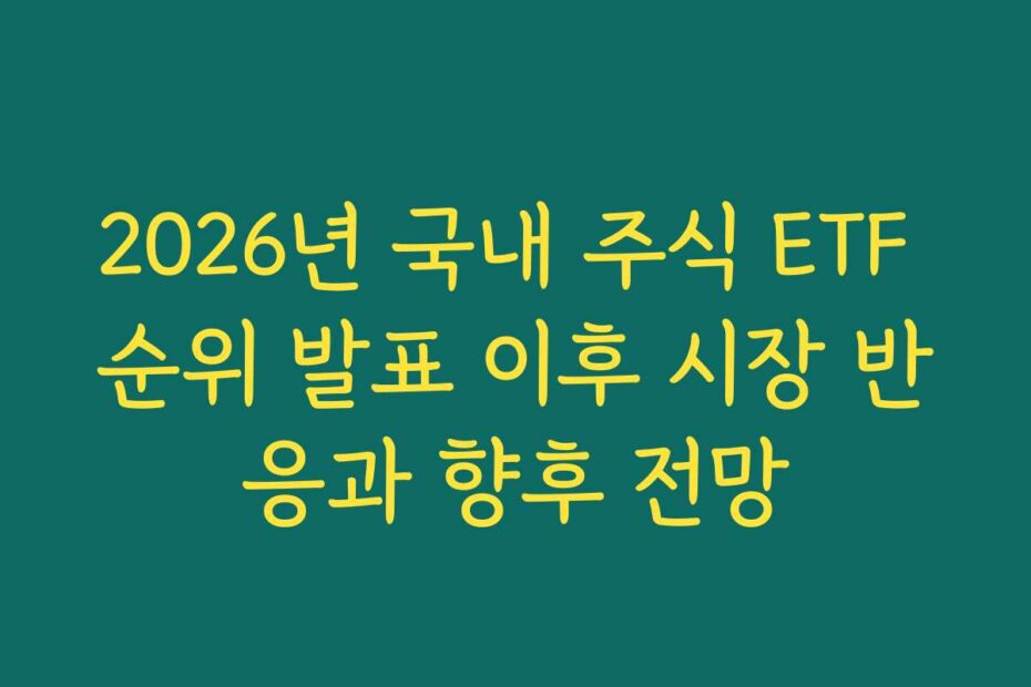 😰 2026년 국내 주식 ETF 순위 발표 이후 시장 반응과 향후 전망 때문에 정말 힘드시죠. 혹시 이런 고민 있으신가요. 2026년 국내 주식 ETF 순위 발표 이후 시장 반응과 향후 전망을 정확히 알고 싶으신가요.