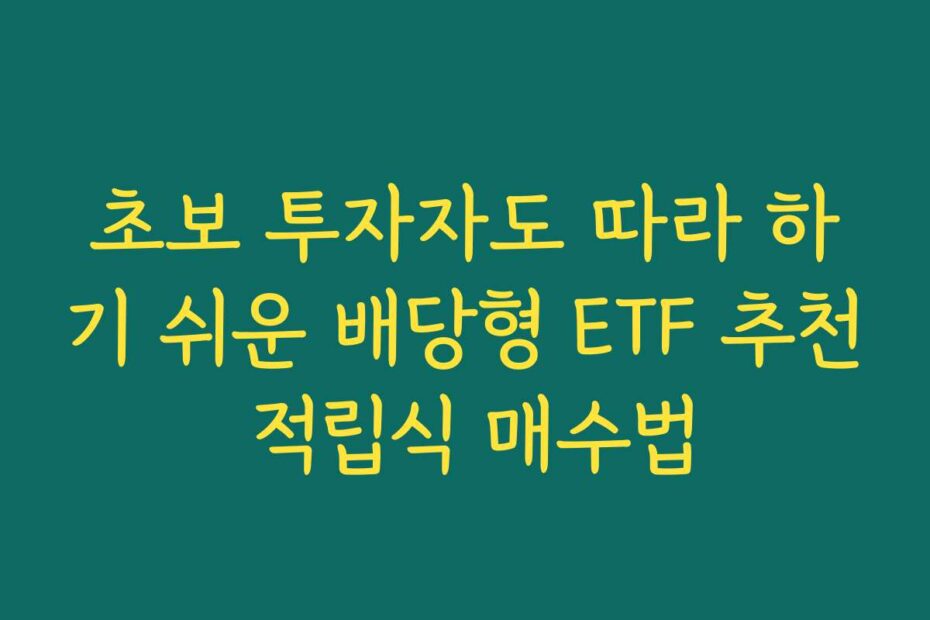 초보 투자자도 따라 하기 쉬운 배당형 ETF 추천 적립식 매수법