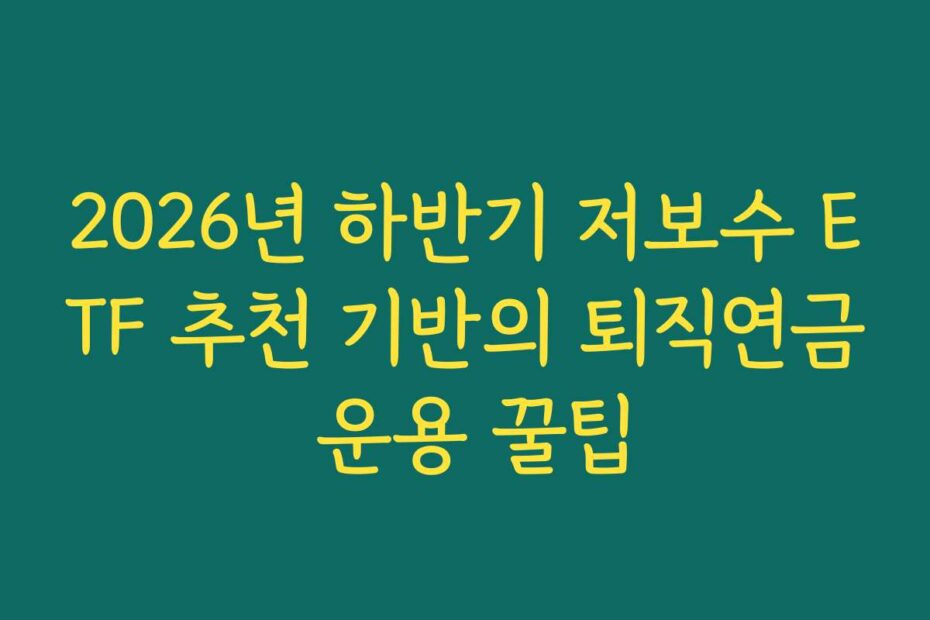 혹시 이런 고민 있으신가요. 2026년 하반기 저보수 ETF 추천 기반의 퇴직연금 운용 꿀팁을 찾고 계신가요. 2026년 최신 정보로 퇴직연금 운용에 대한 명확한 가이드를 제공해 드립니다.