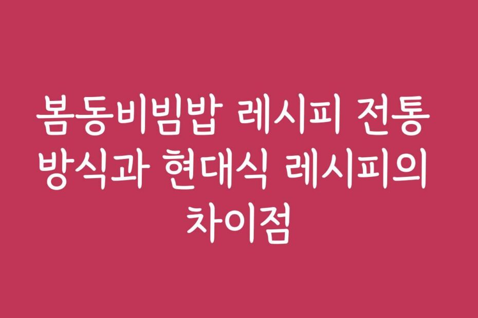 봄동비빔밥 레시피 전통 방식과 현대식 레시피의 차이점와 연관 키워드를 조합한 인사이트형 제목 봄동비빔밥은 한국의 대표적인 봄철 요리로, 전통 방식과 현대식 레시피의 차이가 확연하게 드러납니다. 2026년 기준으로 봄동비빔밥의 레시피도 변화하고 있죠.