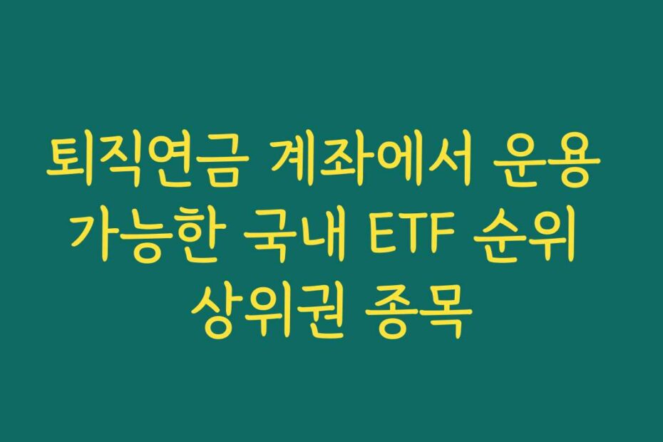 혹시 이런 고민 있으신가요. 퇴직연금 계좌에서 운용 가능한 국내 ETF 순위 상위권 종목에 대한 정보가 필요하신 분들을 위해 2026년 최신 정보를 정리했습니다.