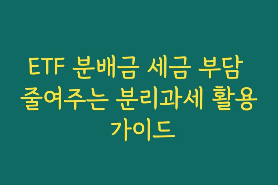혹시 이런 고민 있으신가요. 2026년 최신 정보에 따르면, ETF 분배금으로 인해 세금 부담이 커지고 있습니다. ETF 분배금 세금 부담 줄여주는 분리과세 활용 가이드로 이 문제를 해결해 보세요.