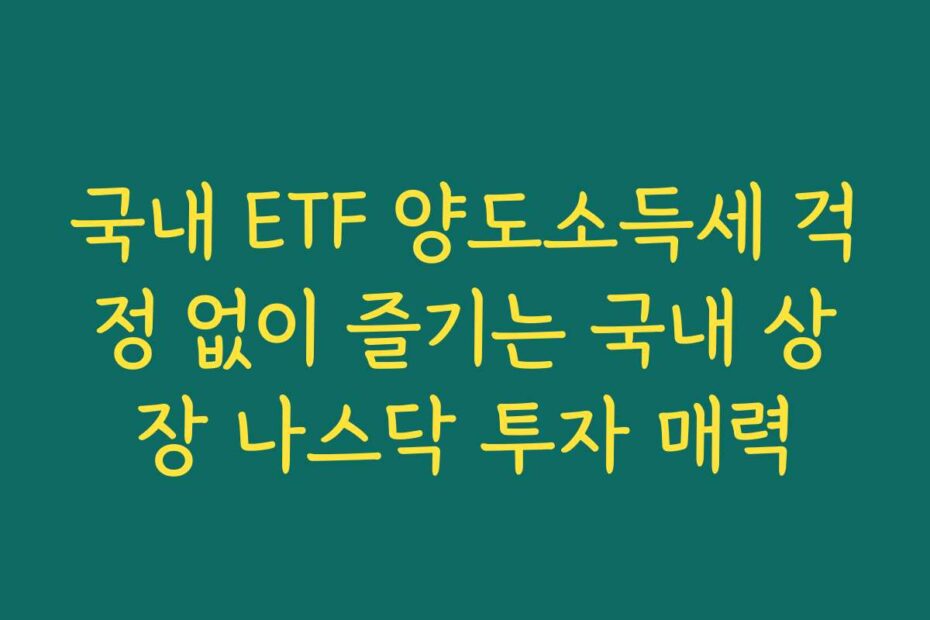 혹시 이런 고민 있으신가요. 2026년 최신 정보로 국내 ETF 양도소득세 걱정 없이 즐기는 국내 상장 나스닥 투자 매력에 대해 알아보겠습니다. 나스닥에 투자하고 싶지만 세금 문제로 고민하는 분들을 위해 필요한 모든 정보를 제공합니다.