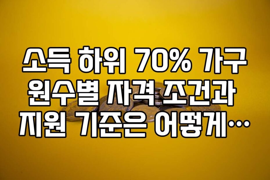 소득 하위 70% 가구원수별 자격 조건과 지원 기준은 어떻게 되나요 소득 하위 70% 가구원수별 자격 조건과 지원 기준은 어떻게 되나요. 이에 대한 정보는 매우 중요합니다. 2026년 기준으로 구체적인 내용을 확인해보세요.