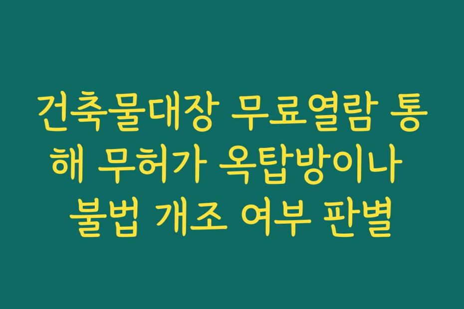 혹시 이런 고민 있으신가요. 건축물대장 무료열람 통해 무허가 옥탑방이나 불법 개조 여부 판별을 통해 안전한 주거 환경을 확인할 수 있습니다. 2026년 최신 정보로, 이 글을 통해 신뢰할 수 있는 정보를 얻어보세요.